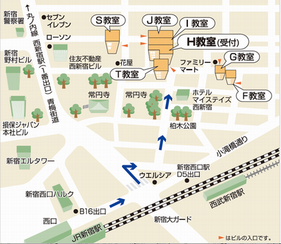 ●駅を降りたらJR新宿駅の方向に向かい、広い道路(青梅街道)まで出ます。