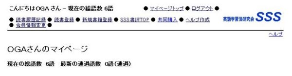 ログインをすると、自分のマイページが表示されます。トップページは各種メニュー、現在の総語数、最新の通過語数が表示され、それぞれ「最近書いた読書記録」「最新登録した書評」「最新書いたレビュー」の最新10件が表示されています。