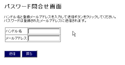自動メール通知により、こちらからパスワードを問い合わせする事ができます。
