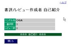 書評/レビューどちらもハンドル名がリンク表示されています。クリックしていただくと、そのハンドル名の方の書評数・レビュー数・自己紹介文を読むことができます。
