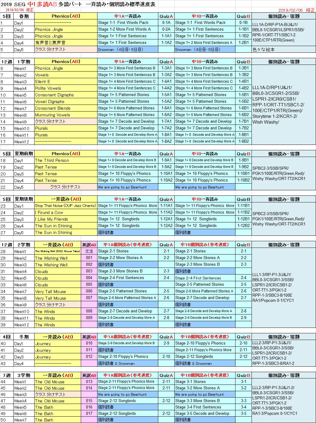 ’†‚P‘½“ÇCƒNƒ‰ƒX@‘½“ǃp[ƒgi“x—\’è•\