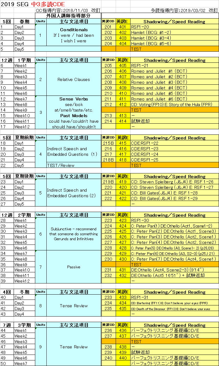 毎回の進度は、下記の表をご参照ください。