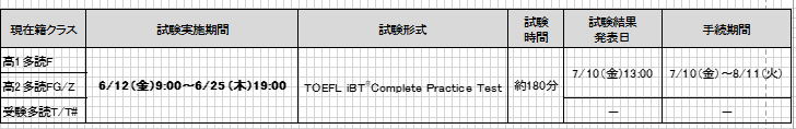 (4) 高1F、高2FGZ,受験多読T/T# は、CIEEの行う、TOEFL iBT Practice Test を行います。