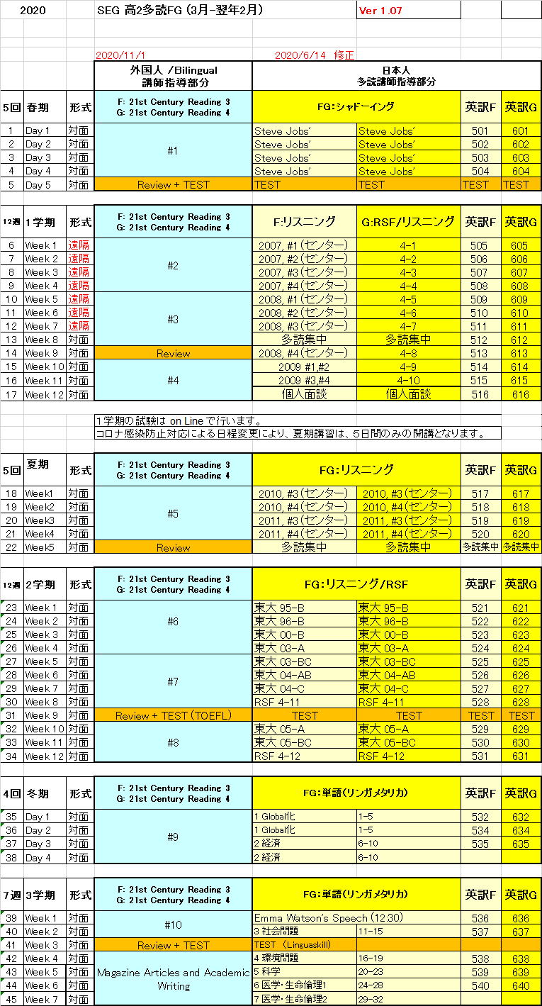 高2多読FG進度予定表