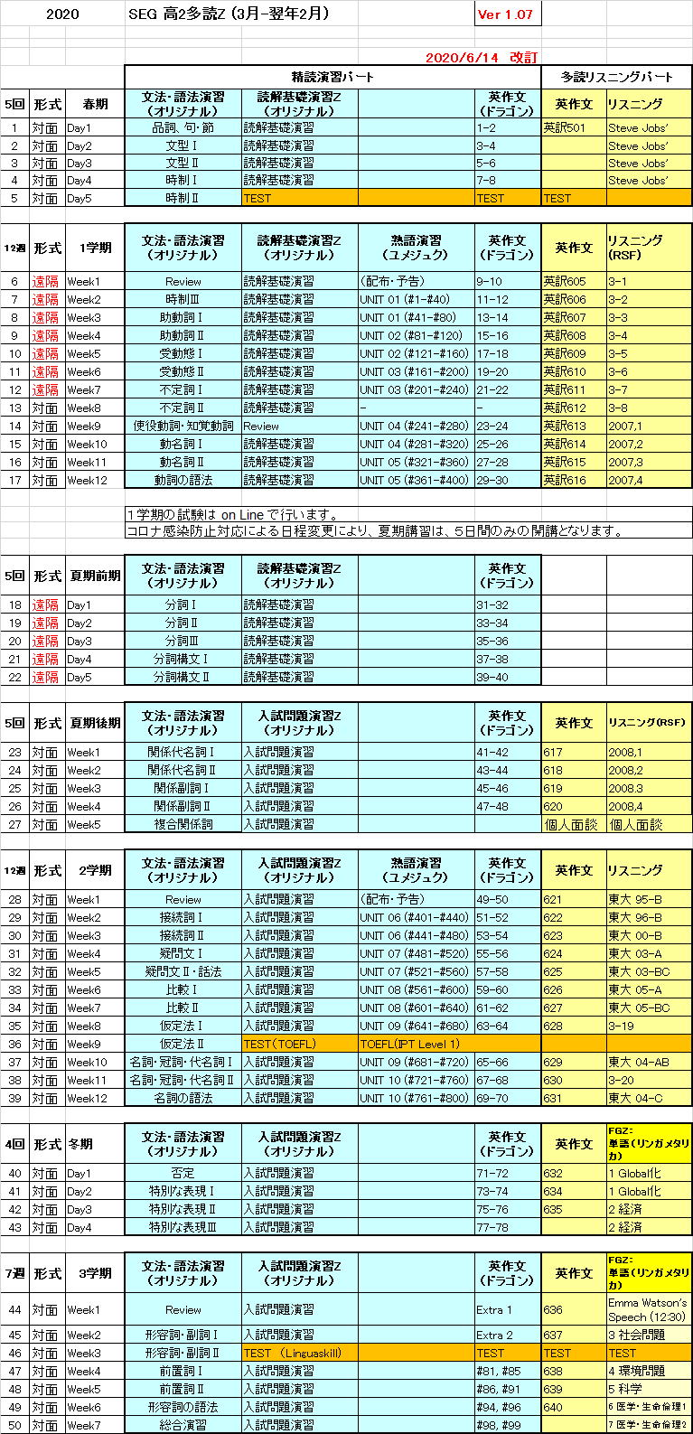 高2多読Zの進度表 高2多読Yの進度表 高2多読のページに戻る