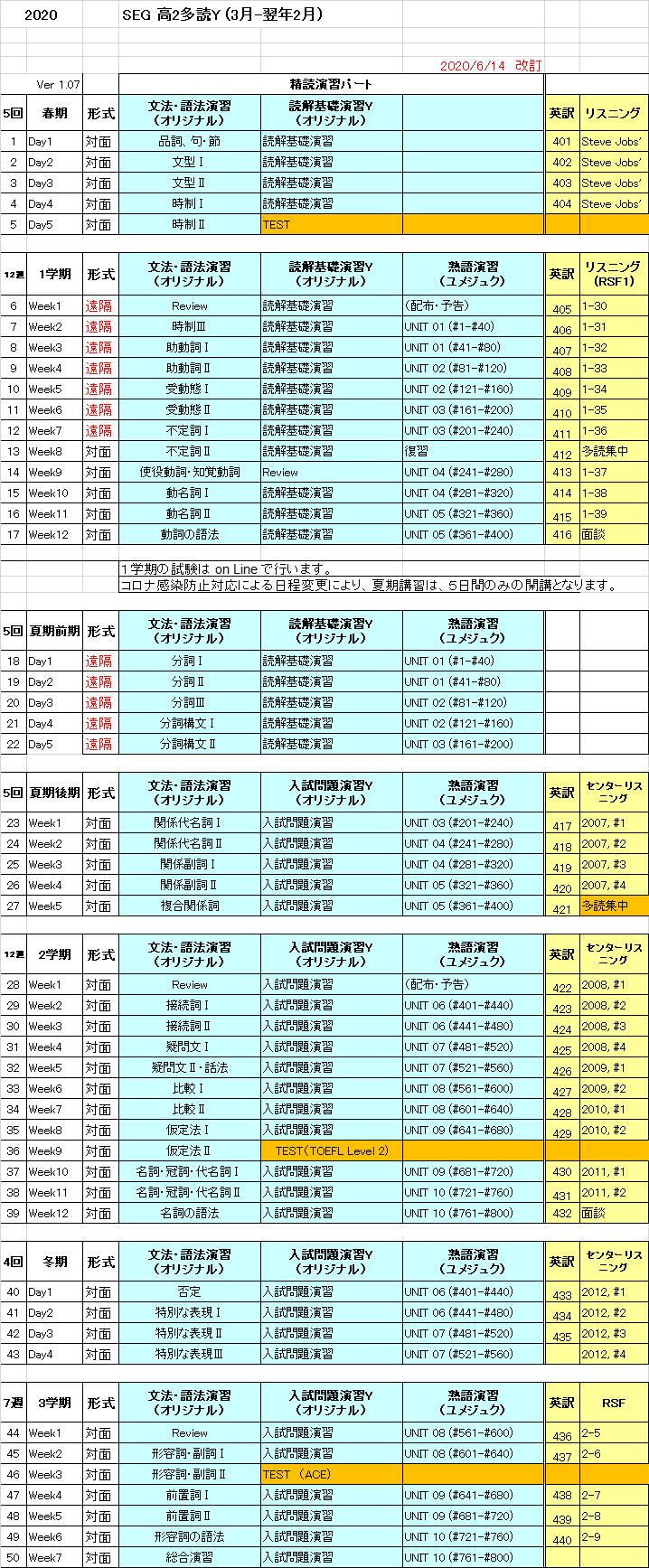 高2多読Y進度予定表