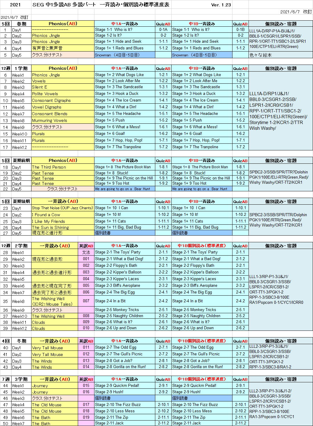’†‚P‘½“ÇCƒNƒ‰ƒX@‘½“ǃp[ƒgi“x—\’è•\
