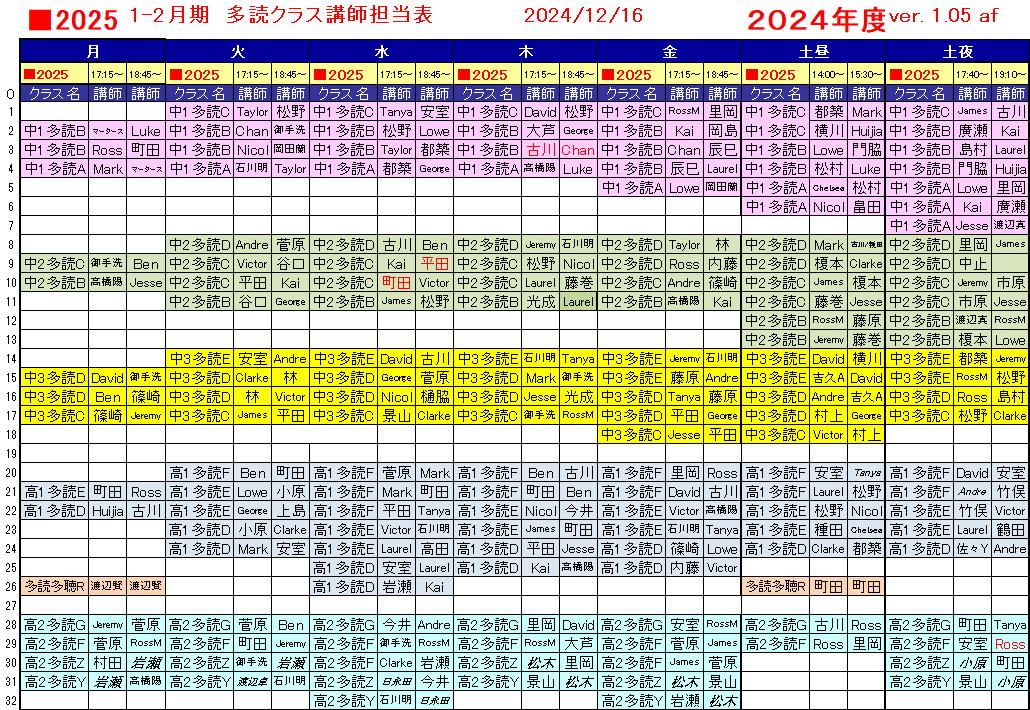 ◆高3受験多読FGH、高2多読Y/Z、多読多聴R 以外のすべての授業は、日本人講師と外国人講師のペア授業です