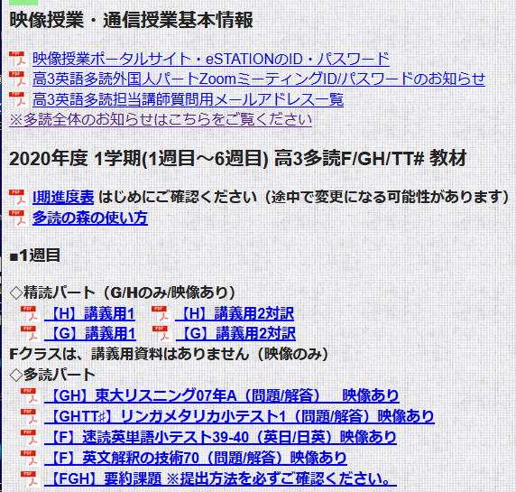 2020年【1学期前半】高3多読F/GH/TT# 教材・映像授業・通信授業基本情報