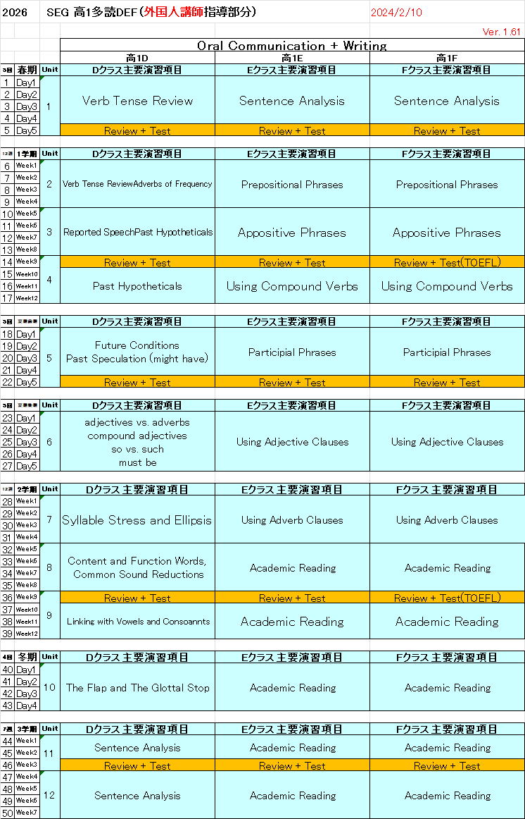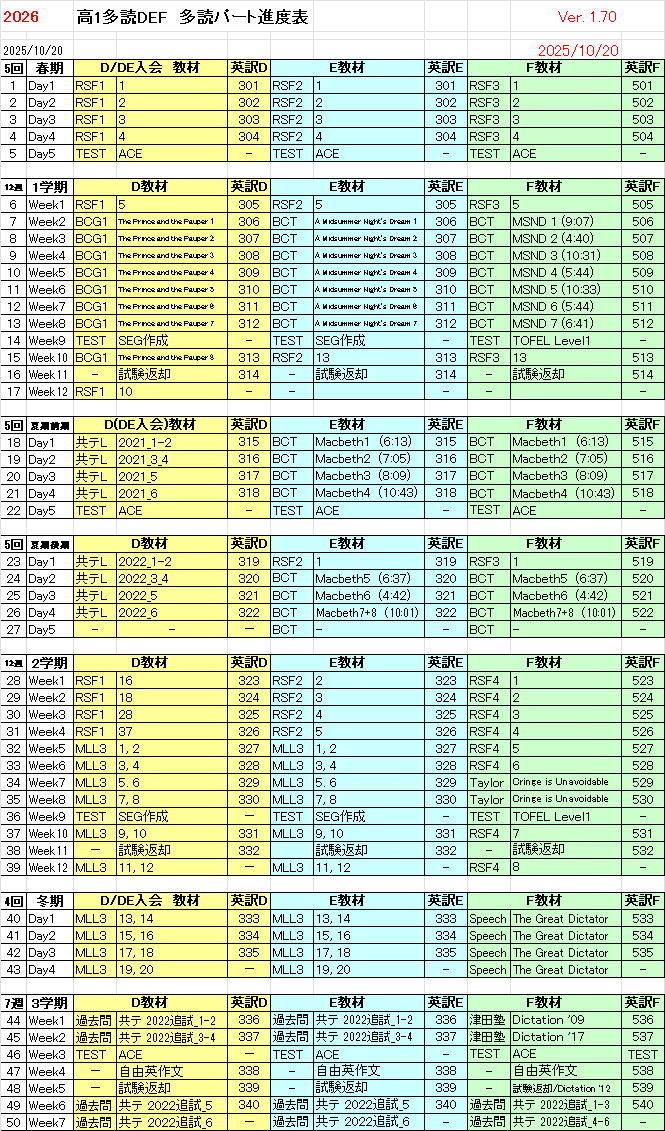 進度・素材は、生徒の実情に応じて、若干変更されることがあります。 OC(外国人パート)進度予定表 多読パート進度表はこちら