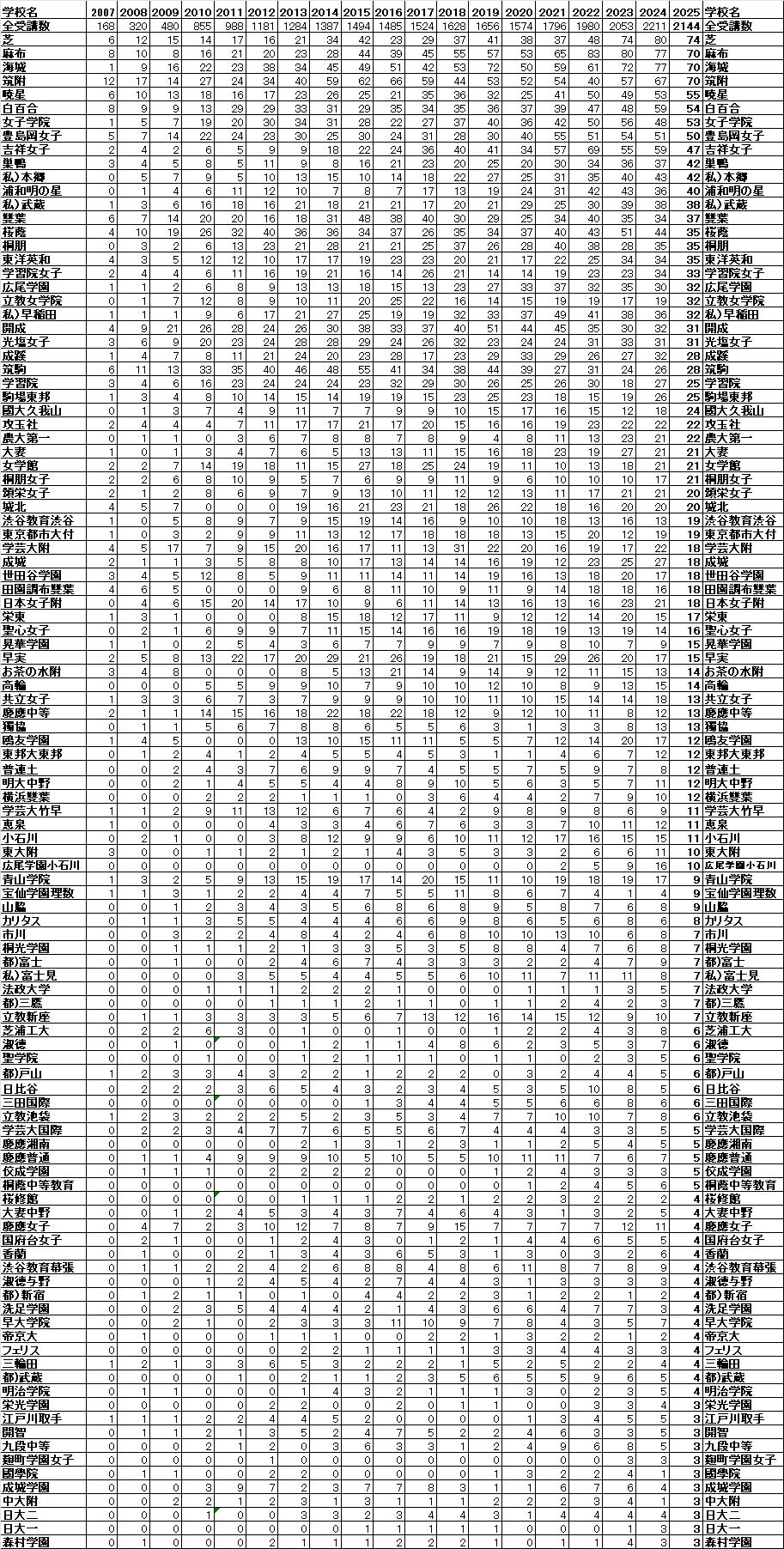 中1〜高3の多読クラスの受講生が3名以上通っている学校のリストです。 (1学期受講生 2024/4/26 現在) 今年は、多読受講生が微減しましたが、歴代番目の生徒数となりました。 今年も、多読の楽しみを多くの皆さんと共有し、多読を楽しみながら、英語力を上げるお手伝いをしてきたいと思います。 (通常授業および多読郵送指導クラスの受講生が対象。 ORT映像クラスは含まず)