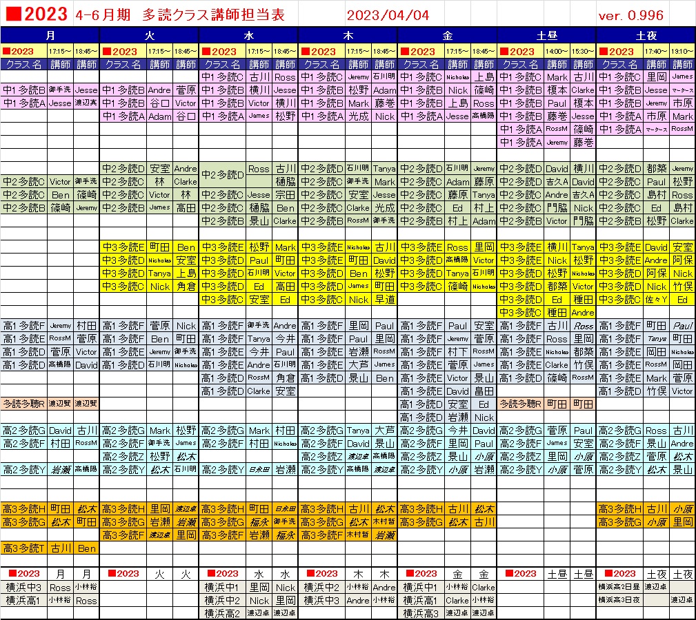 担当講師およびクラス編成は予告なく変更されることがあります。