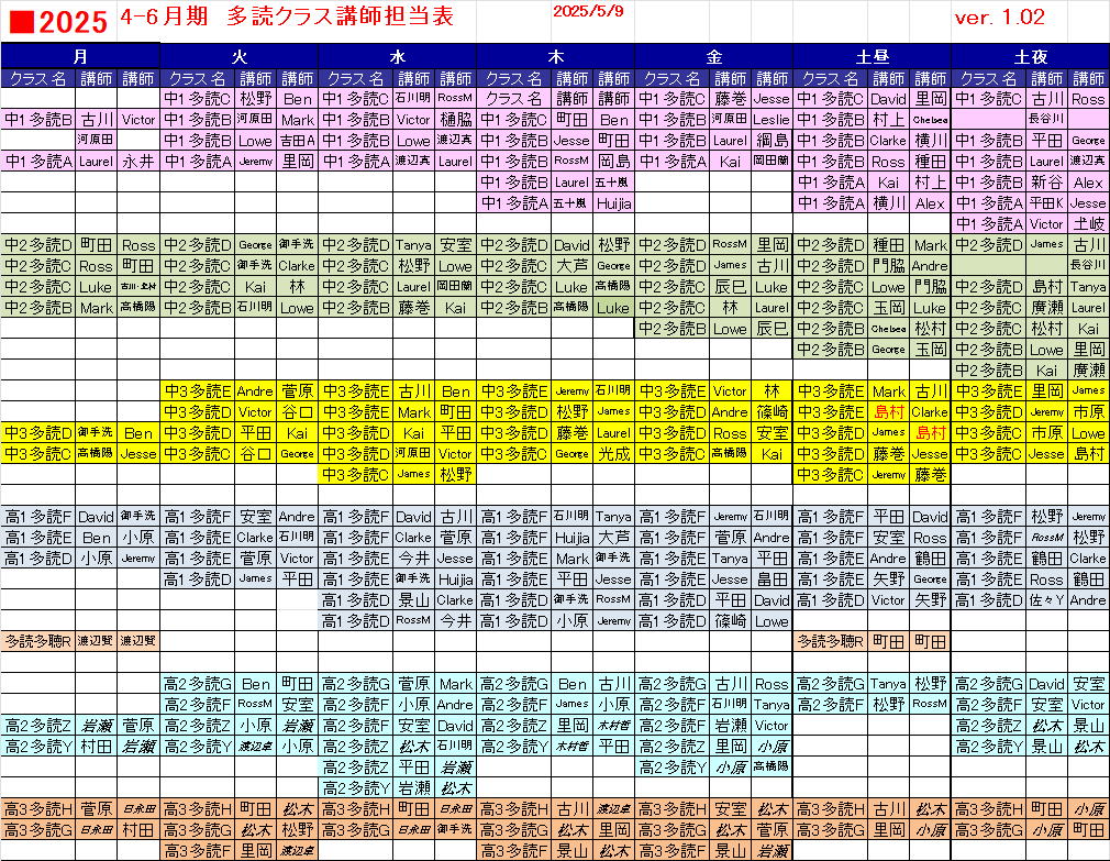 ◆「高2多読」は、平日 5:05-8:25 土昼 1:40-5:00 土夜 5:30-8:50です。 詳しくは、高2多読のページへ